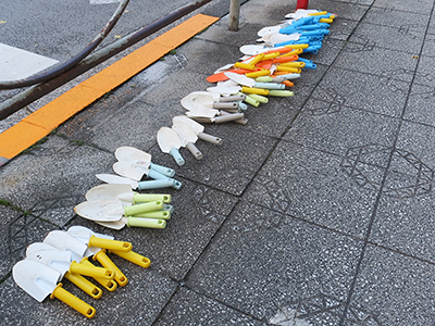 貸し出しているシャベルの準備の様子