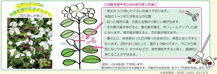 切り戻しをするとボリュームアップして花もたくさん咲きます。